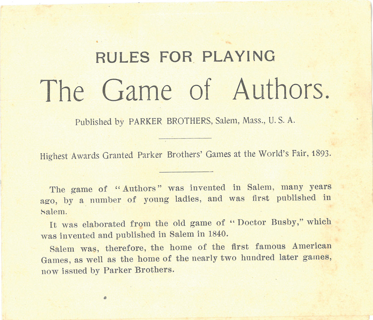 Box 88A Authors, The Game of, Parker Brothers