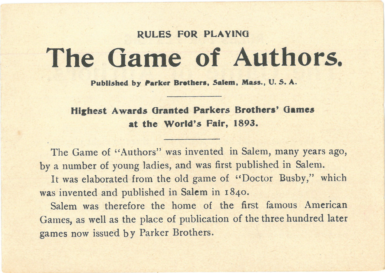 Box 94 Authors, The Game of, New Edition, Parker Brothers