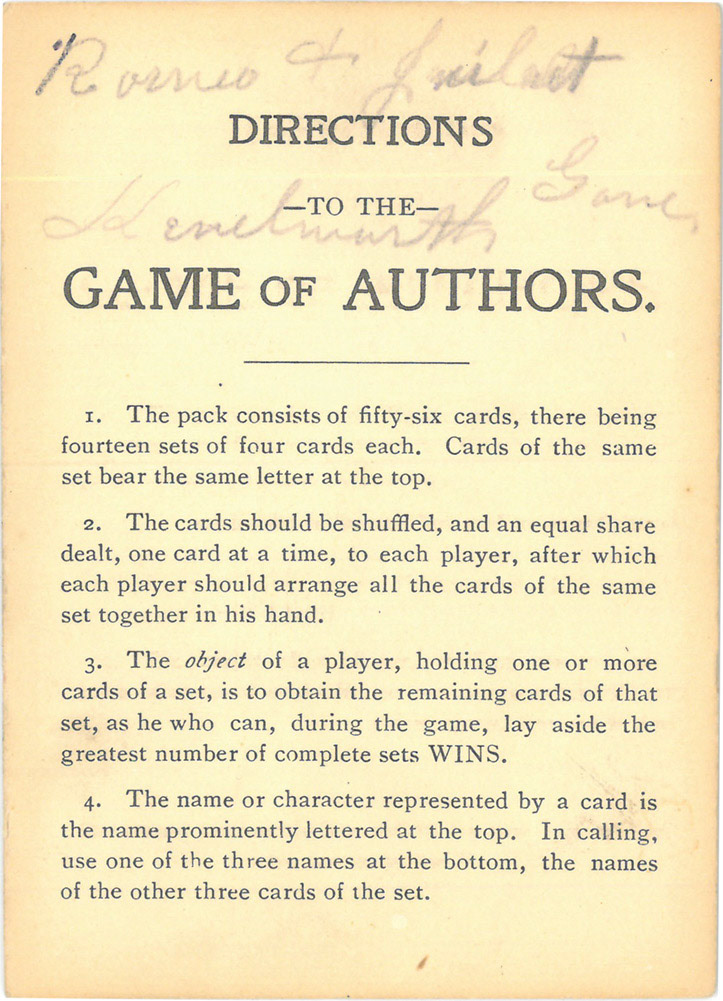 Box 96A Authors, Game of, Salem Edition, Parker Brothers